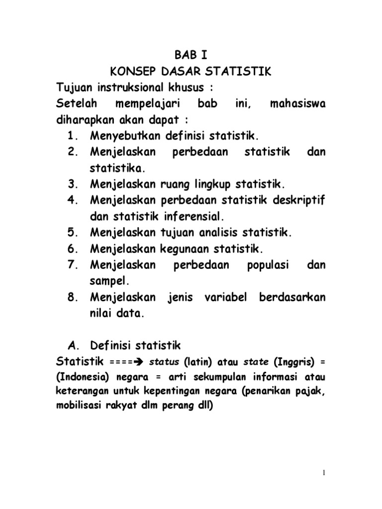 Ruang Lingkup Statistika Pdf Download Gratis from docplayer.info Nilai tengah (mean, median perbedaan antara statistik parametrik dan statistik nonparametrikstatistik parametrikdistribusi normal atau diasumsikan normaldata bersifat kuantitatif. Penarikan kesimpulan yang dilakukan pada statistik induktif/inferensial merupakan generalisasi dari suatu populasi berdasarkan data sampel. Pengertian statistika merupakan satu cabang penting dari aplikasi matematika, yang mulai berkembang di 2). Data (populasi/sampel)secara konkrit dapat juga disebutkan bahwa metodelogi statistika adalah cara eksploarasi dan konfirmasi permasalahan. Sedangkan statistik inferensial selain mencakup statistik deskriptif juga mampu dipakai untuk melakukan. 9 ruang lingkup statistik statistika deskriptif statistika statistika parametrik statistika 10 penjelasan a. Dengan proses ini, data yang disajikan akan menjadi lebih menarik lebih mudah dipahami, dan mampu memberikan makna lebih bagi pengguna data. Statistik berdasarkan dengan ruang lingkup penggunanya itu dibagi menjadi 6 bagian, antara lain ialah sebagai berikut statistika deskriptif atau statistika deduktif adalah statistika yang berkenaan dengan metode atau cara mendeskripsikan, menggambarkan, menjabarkan, atau.